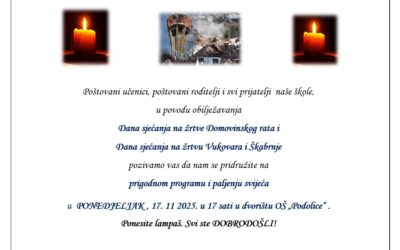 I u OŠ „Podolice“ Koprivnica prisjetili smo se Vukovara i velikih stradanja koje je Grad heroj sa svojim stanovnicima pretprio tijekom Domovinskog rata. Naši učenici pripremili su program kako bi odali počast svim braniteljima i žrtvama koji su dali svoj život u...