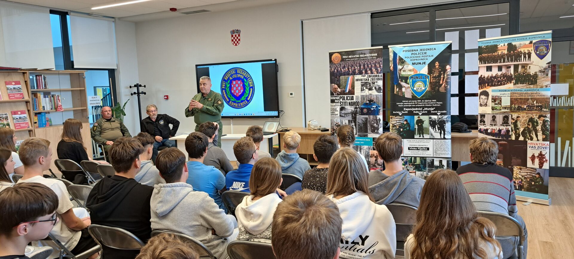 Tijekom predavanja učenici su se upoznali sa formiranjem postrojbe 5.kolovoza 1990. i njezinim djelovanjem tijekom Domovinskog rata s posebnim naglaskom na Bitku za vojarne u Koprivnici, Varaždinu i Bjelovaru (rujan/listopad 1991.).