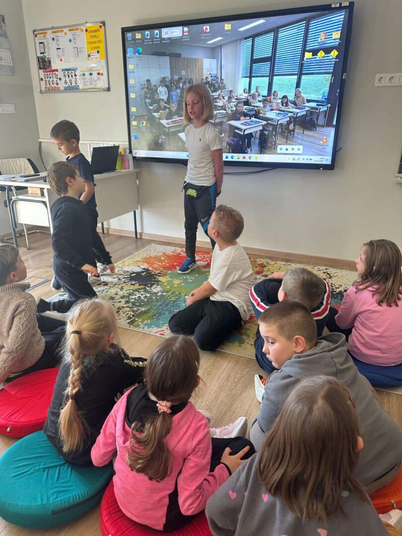 Osim učenika 1.b i 2.a, u radionici su sudjelovali i učenici iz 1.c i 2.b razreda sa svojom učiteljicom Marijanom Bagarić. Zajedno su pogledali kratki edukativni film “Danica i sovica dijabetičarka”, nakon čega je učenik 1.b razreda, Luka, svojim vršnjacima pojasnio što je dijabetes te im ispričao kako izgleda život s tom bolešću. Pokazao im je i postupak mjerenja šećera iz prsta.