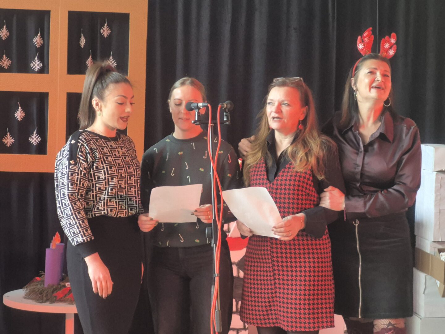 Prvi nas je raspjevao i razveselio naš učitelj Matija Rušak. Pjesma „Kad si sretan“ uz gitaru bila je dobitna kombinacija. Svi smo se smijali i pjevali dobro nam znane stihove. O važnosti i moći ljubavi u ovo čarobno blagdansko vrijeme pjevale su nam naše četiri dive Lidija Bogadi, Dora Šimek, Sanja Ciber i Ana Marija Grčić. Oliverov hit „Vjeruj u ljubav“ u njihovoj je izvedbi dobio novu dimenziju.